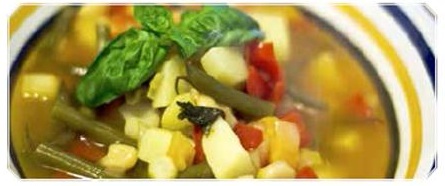 Minestrone freddo con pesto Ingredienti per 6 persone: 2 cipolle bianche 2 carote 2 costole di sedano 4 zucchine 2 patate 2 mazzi di... 28.07.2015