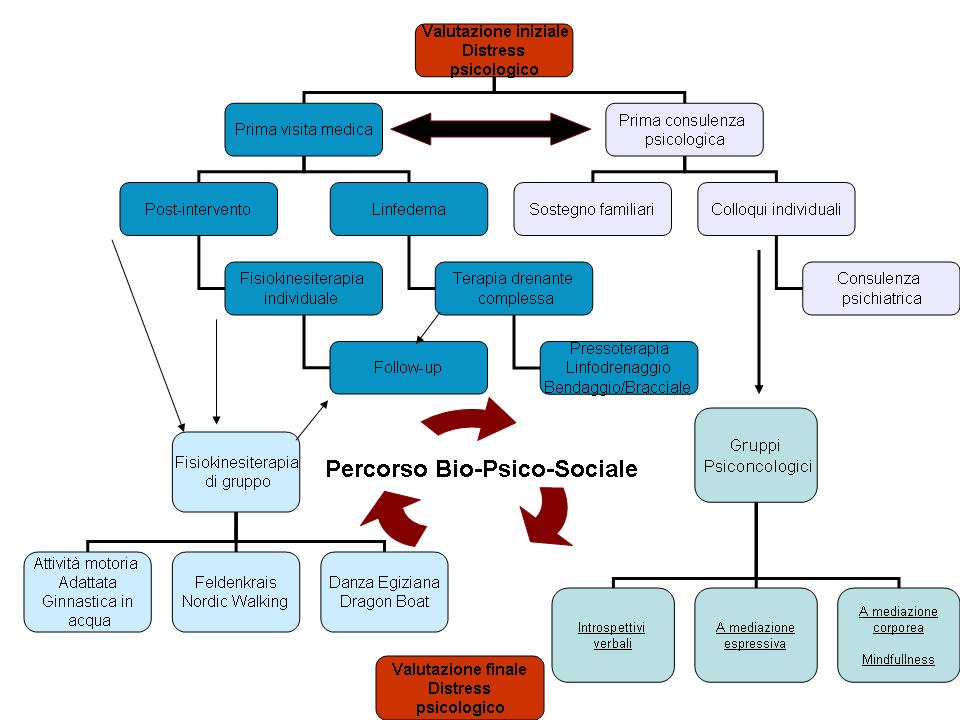 - sedute individuali, lavoro di gruppo, rilassamento, yoga, mindfulness, arteterapia, danza egiziana, feldenkrais, attività motoria adattata, musicoterapia, laboratorio teatrale, scrittura creativa presso l’ambulatorio psiconcologico e la palestra;
