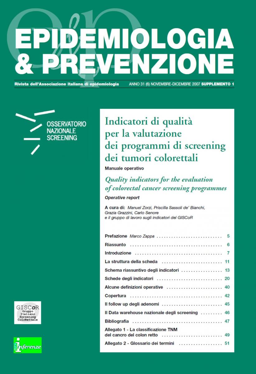 Il documento è stato redatto da esperti del Gruppo Italiano Screening colorettale (GISCoR) e raccoglie gli indicatori per la valutazione di qualità dello screening per il carcinoma del colon-retto