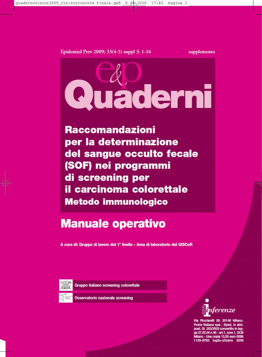 Manuale operativo a cura del GISCoR (Gruppo Italiano Screening ColoRettale) che si propone di fornire agli operatori dei programmi di screening uno strumento per facilitare e rendere omogenea la rilevazione ed il monitoraggio dei cancri di intervallo.