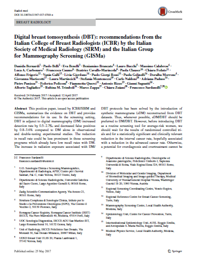Documento di consenso GISMa/SIRM-Sezione di Senologia sulla tomosintesi